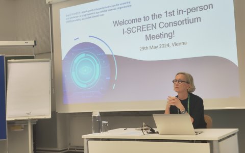 I-SCREEN consortium kicked off a meeting on May 29th in Vienna, Austria, with partners coming together for a comprehensive discussion on the project's progress and future directions. Ursula Schmidt-Erfurth from the Medical University of Vienna, the coordinator of the project, opened the meeting with an overview of the agenda and conveyed several important messages to the consortium.